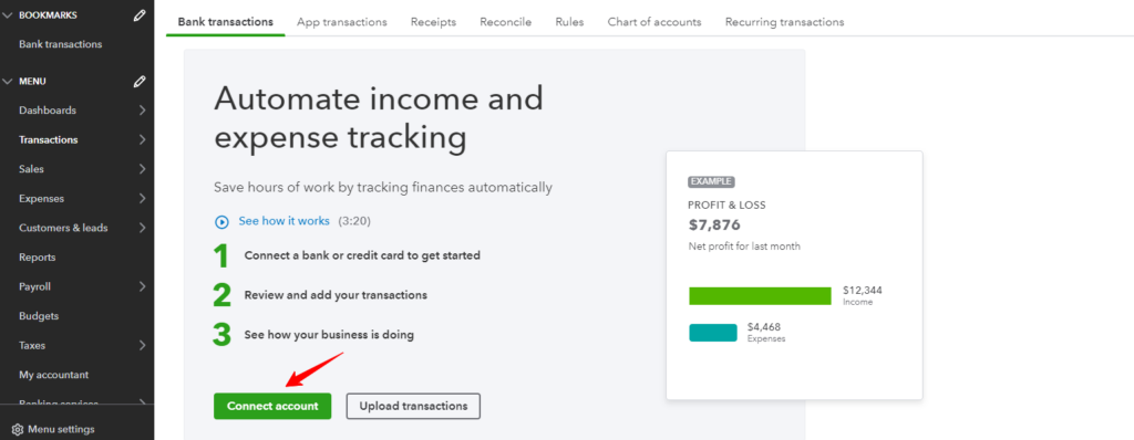 Connecting your bank and credit card accounts to QuickBooks Online automates your financial transactions, making it easier than ever to track, categorize, and manage your finances in one central hub. This helps you to save time in updating your bank feeds. All you have to do is review and approve them. Say goodbye to manual data entry and hello to accurate, up-to-date financial information at your fingertips.