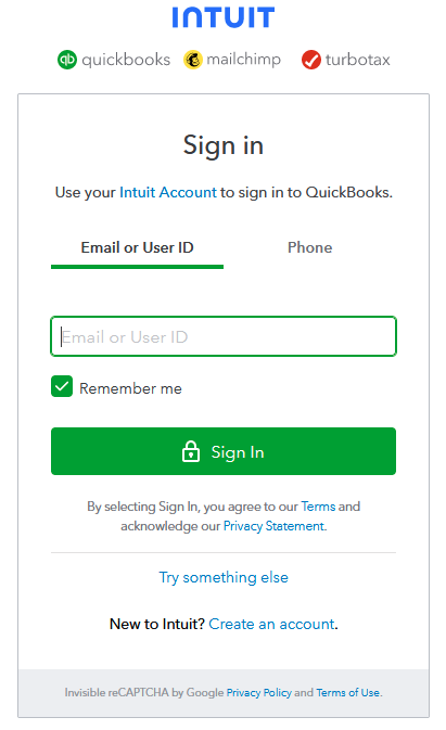 - Save your time by opting for a more efficient method. Use your Intuit account credentials instead. Simply input your user ID and password, and smoothly sign in to QuickBooks Online through your Intuit account.